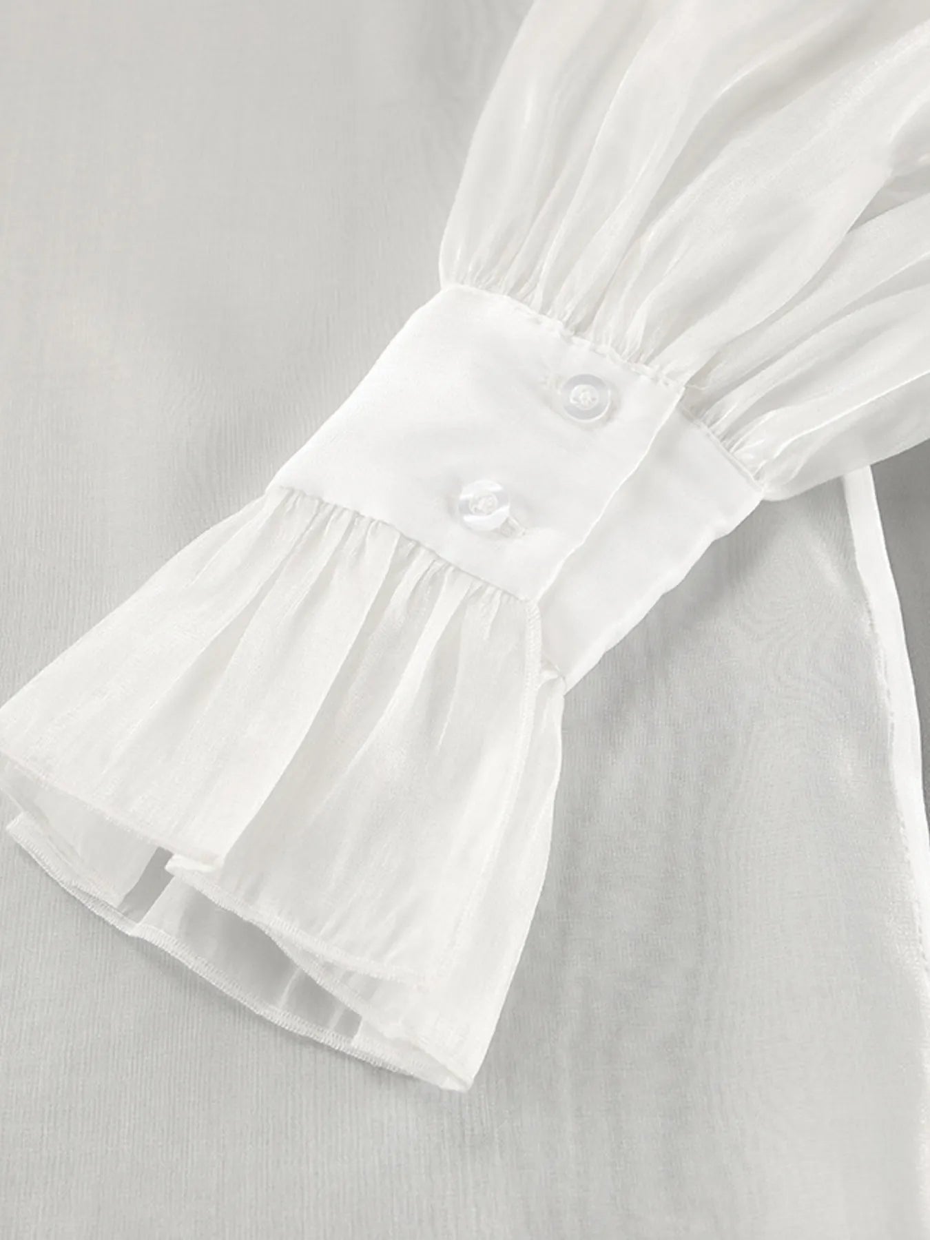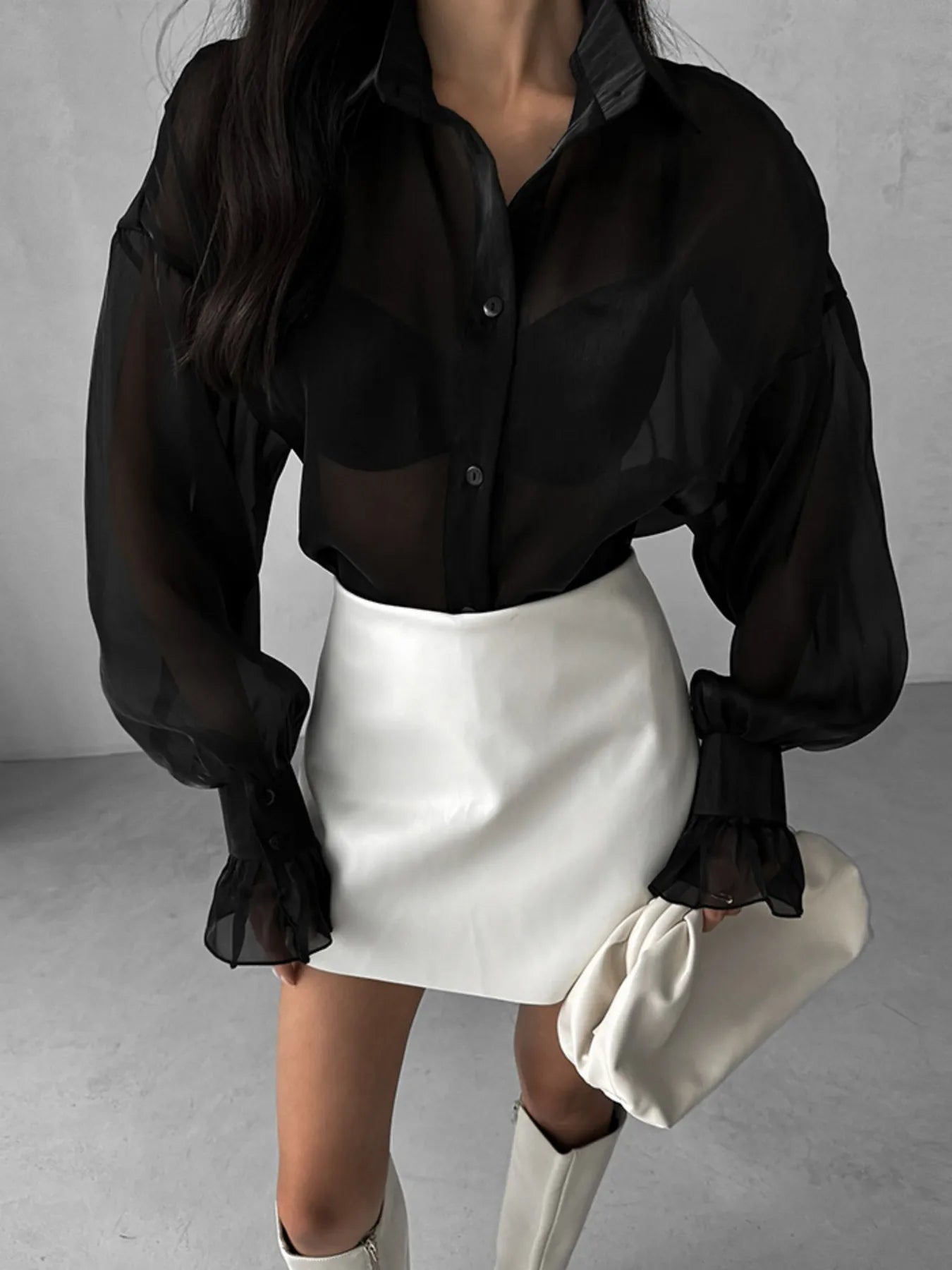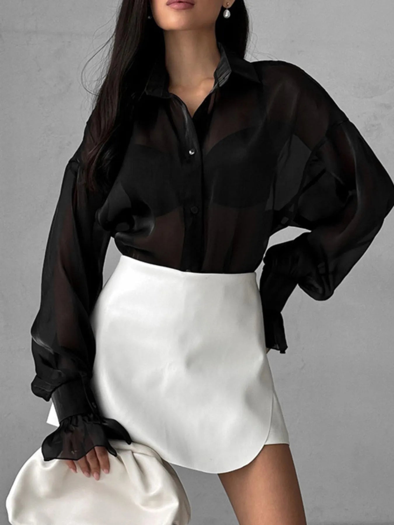 - Features:Buttoned,Sheer,Mesh,Ruffled