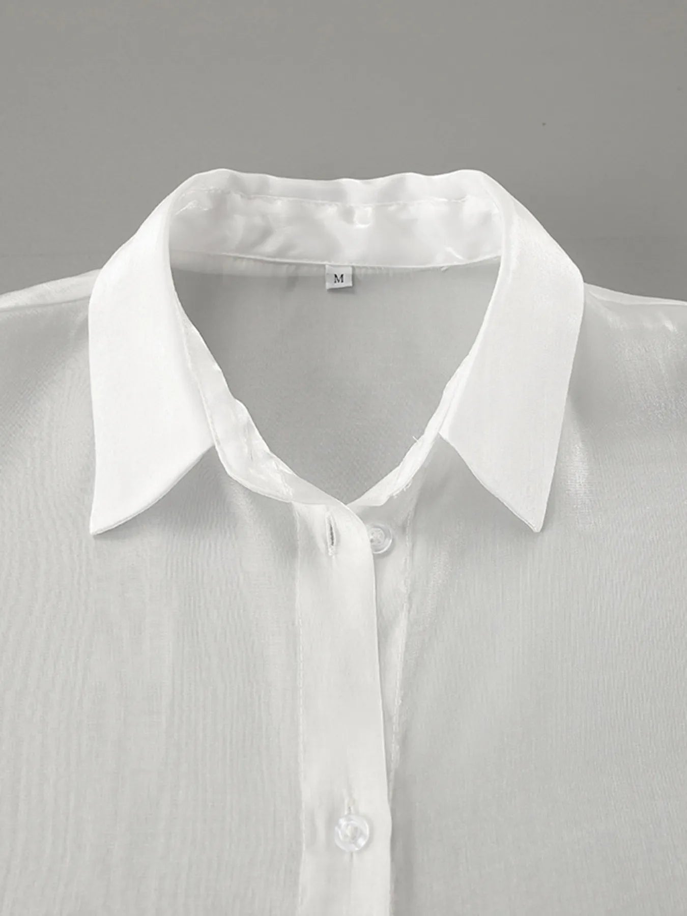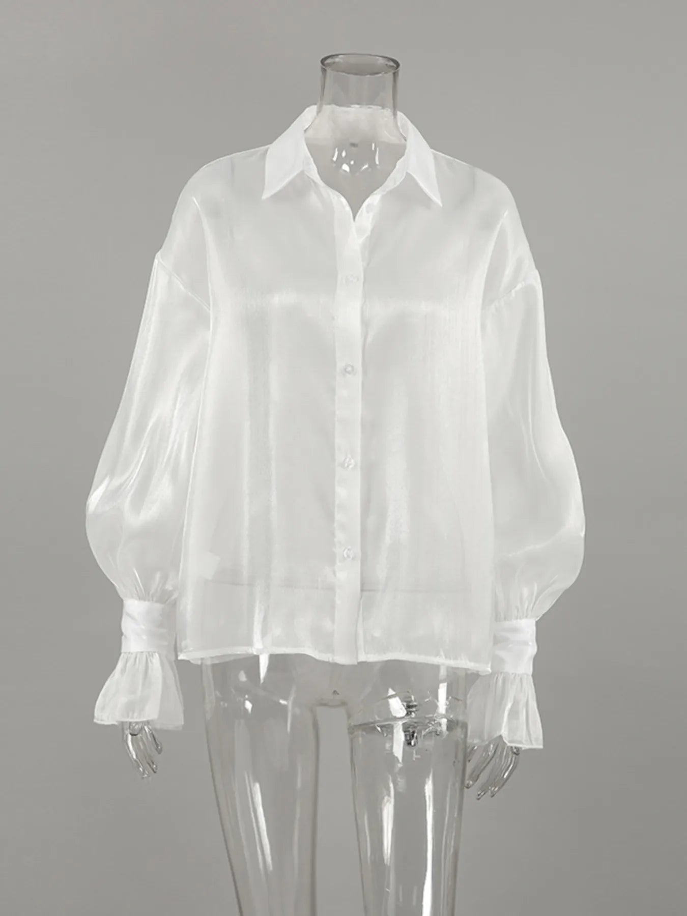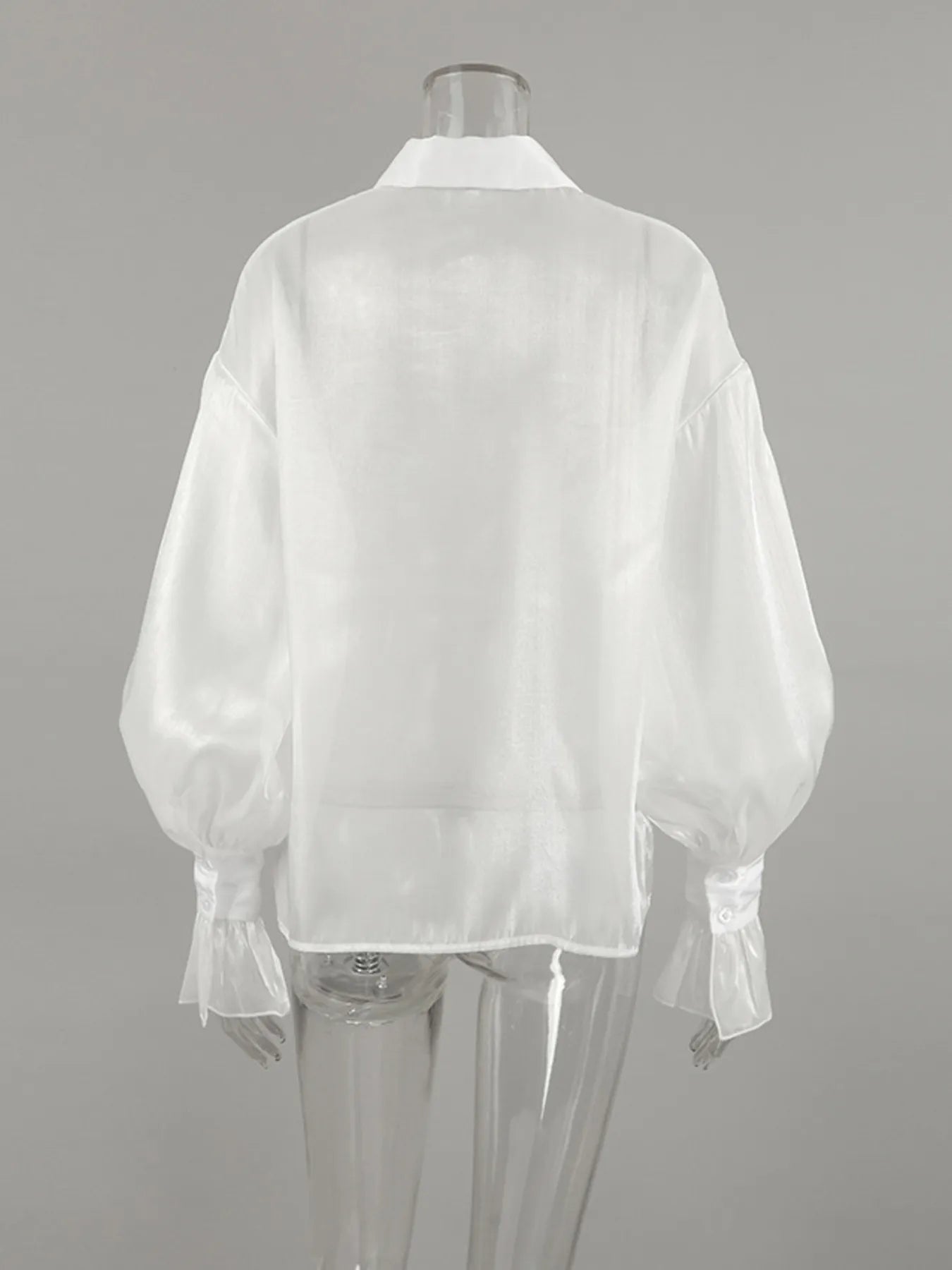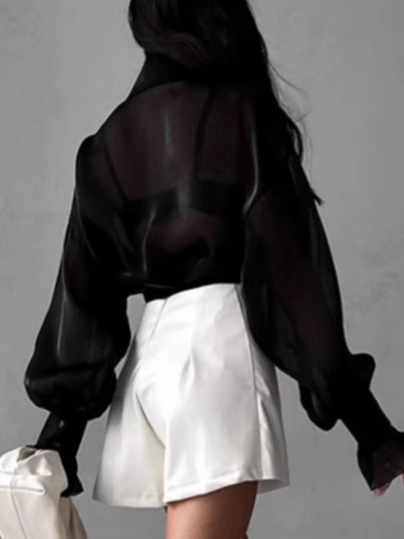 - Features:Buttoned,Sheer,Mesh,Ruffled