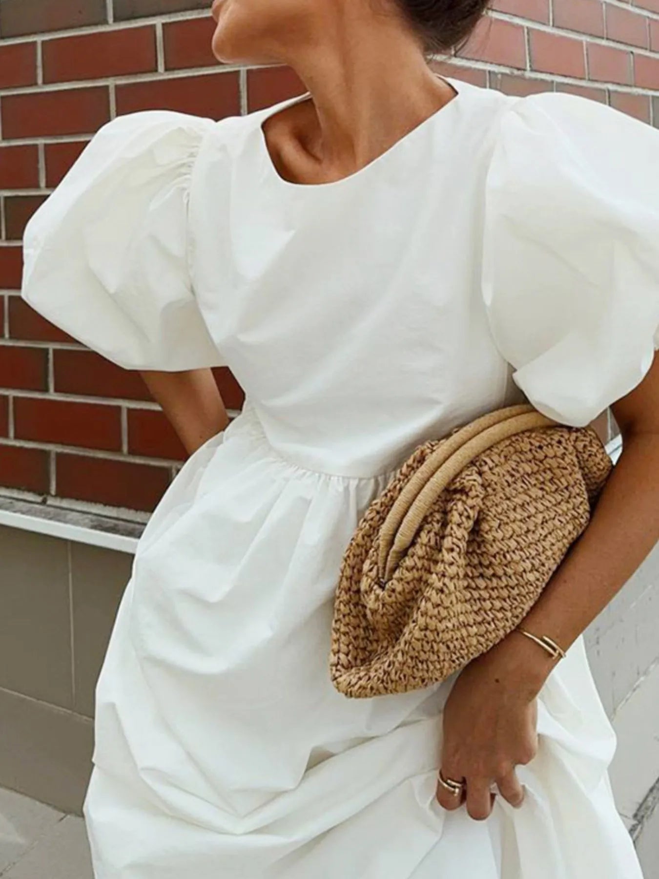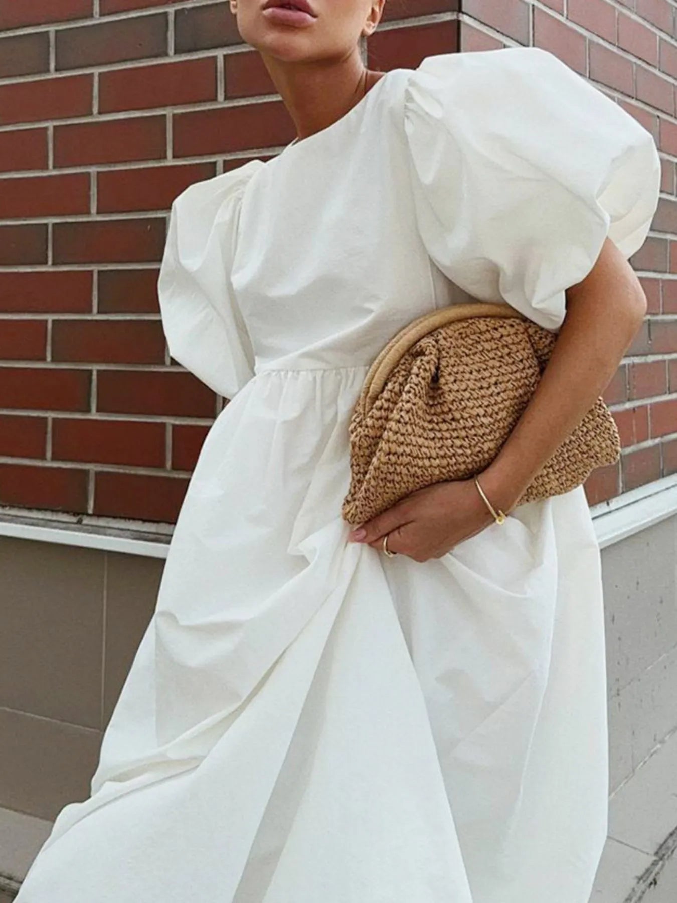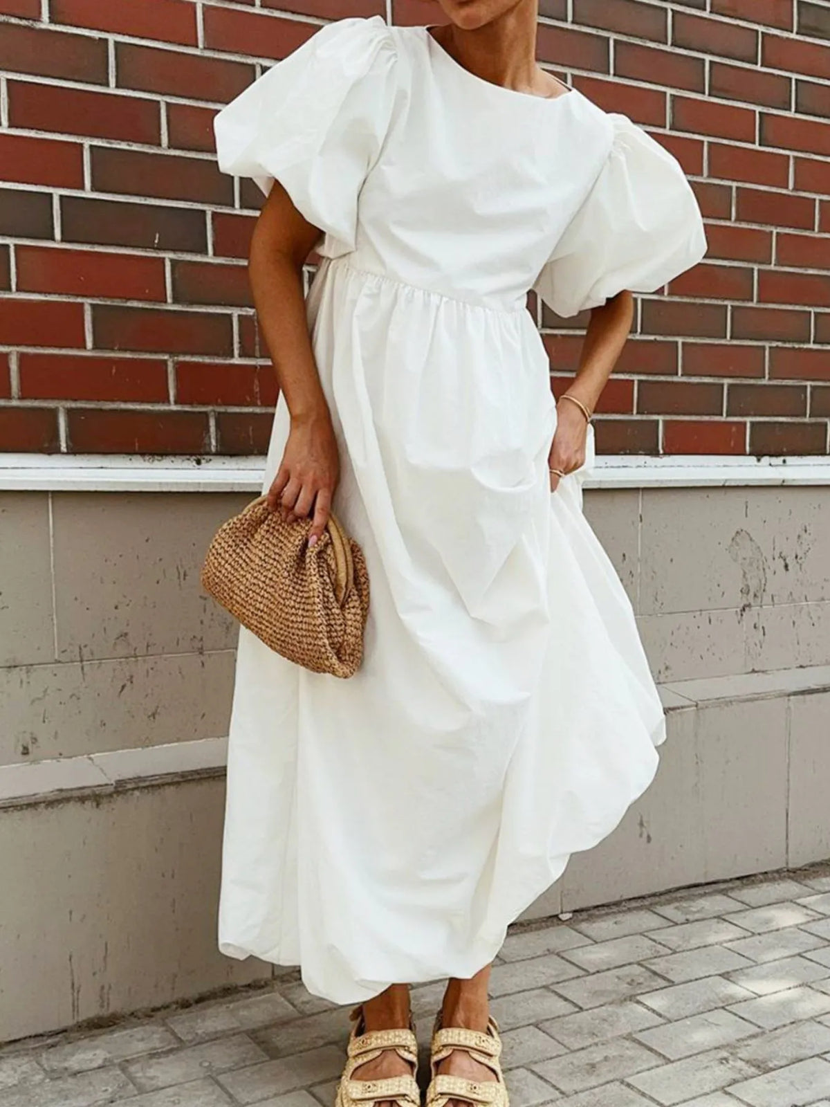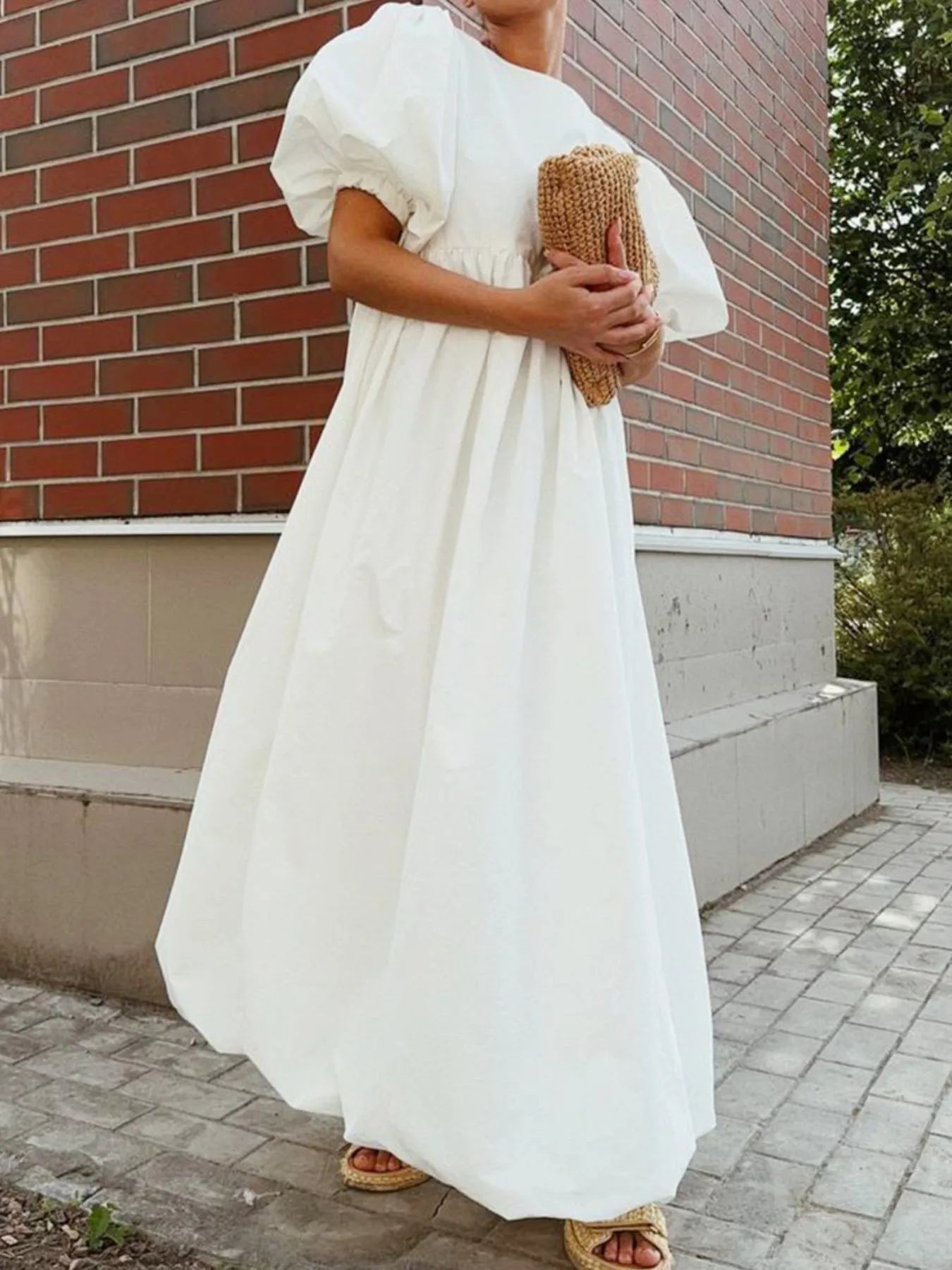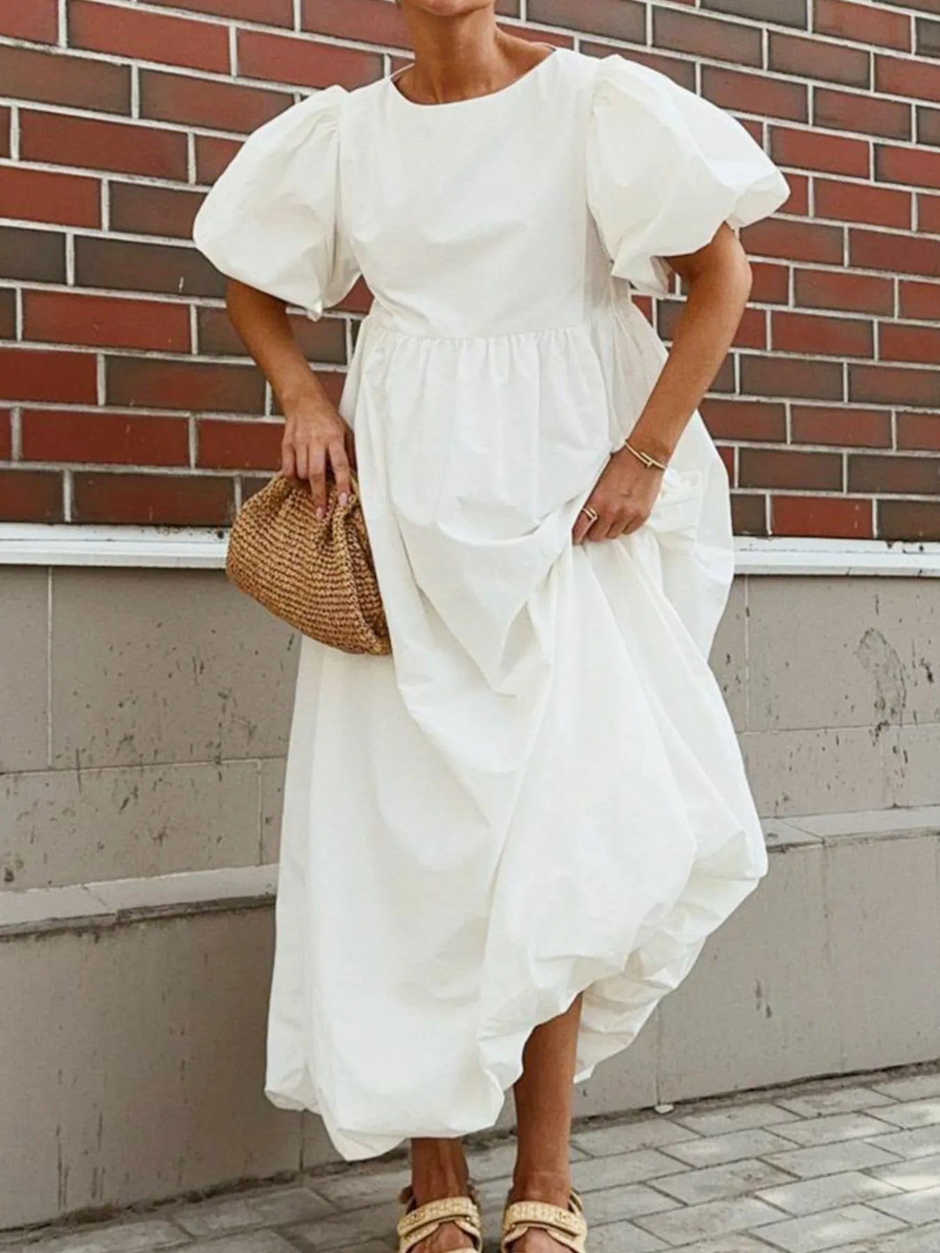 Puff Sleeve Round Neck Maxi Dress
