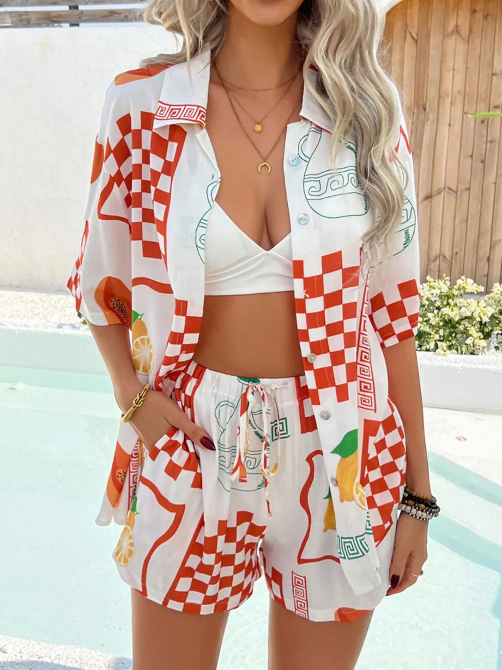 Devine Printed Collared Neck Half Sleeve Top and Shorts Set